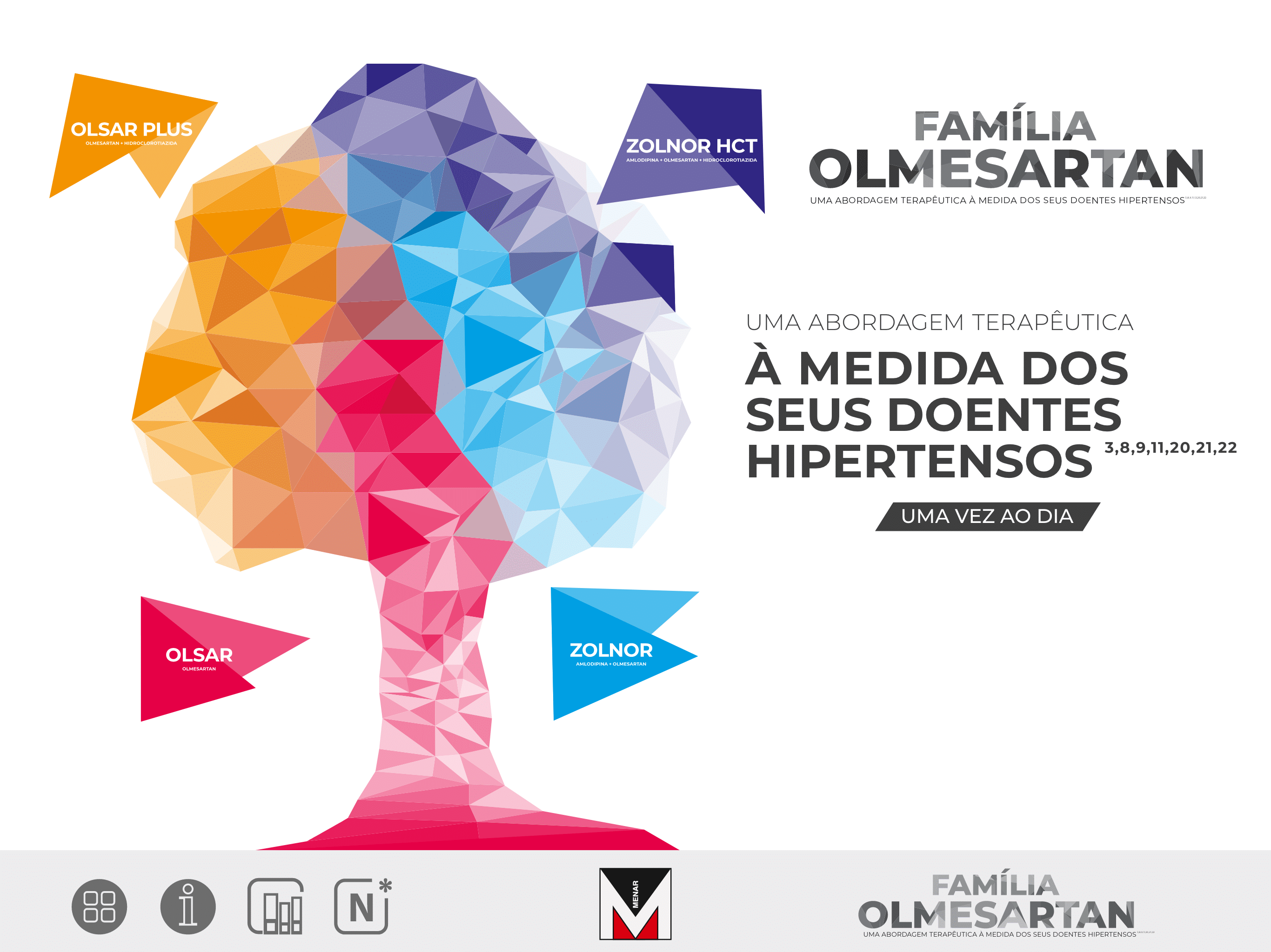 7 Estudo randomizado, duplamente cego com grupo paralelo, multicêntrico. Comparação direta da eficácia anti-hipertensora de Olmesartan 20mg, uma vez dia, com Candesartan 8mg, uma vez dia, em 643 doentes com PAD 100-120 mmHg e PAS >150 mmHg.